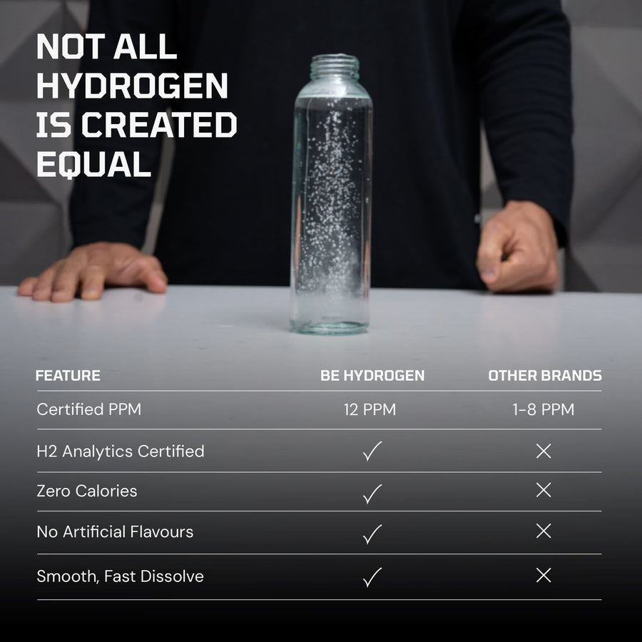 BE HYDROGEN tablets are independently verified through H2 Analytics to confirm true dissolved hydrogen concentration, reaction performance, and purity. This ensures the product delivers the hydrogen levels stated and meets the quality standards you expect.